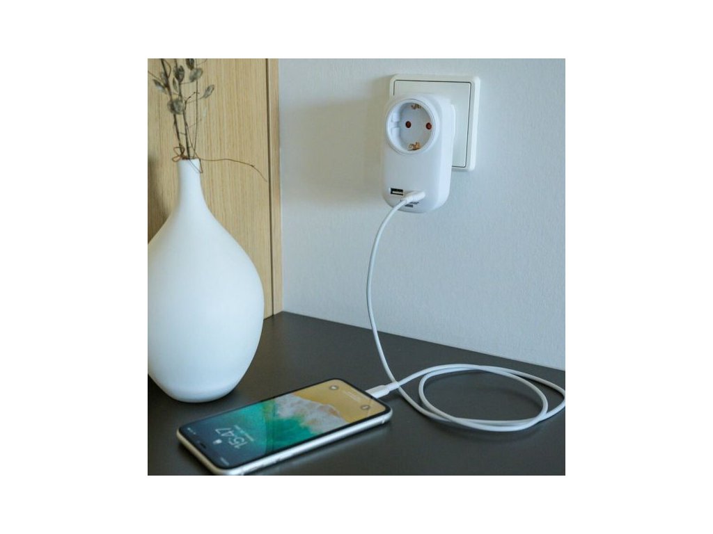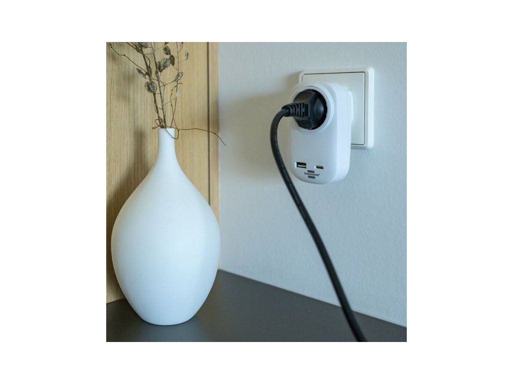 Praktický a extrémně kompaktní adaptér se zásuvkou a dvojicí USB výstupů (USB-A a USB-C s Power Delivery) umožňuje bezpečné nabíjení a napájení více zařízení současně. Je ideální jak pro použití doma, tak i na cestách, v obytném voze či na dovolené.