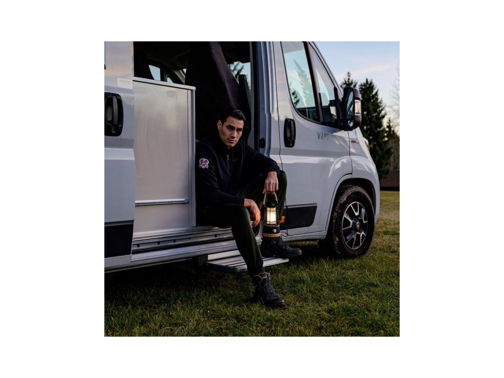 Dobíjecí přes USB-C kabel (součástí balení). Vhodná pro všechny, kdo hledají odolné, úsporné a stylové světlo nejen do karavanu.