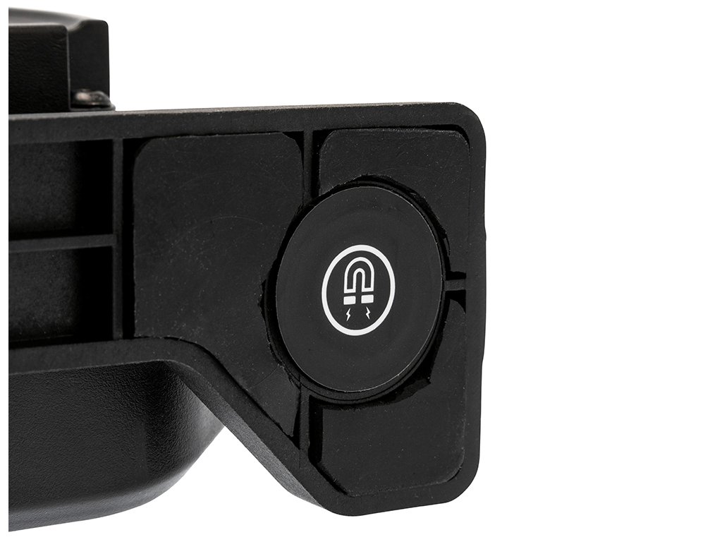 Díky magnetické otočné základně se světlo snadno uchytí na kovové části vozu a nasměruje přesně tam, kam potřebujete. Gumové nožky pomáhají stabilitě a chrání povrch.