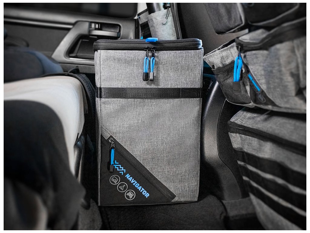 Navigator Mini-Bin Buddy je chytré řešení pro odpad v karavanu, obytném autě i v kempu. Díky tvrdému tvarovanému víku se zipem pomáhá udržet zápach uvnitř a zlepšuje hygienu v obytném prostoru i pod markýzou.
