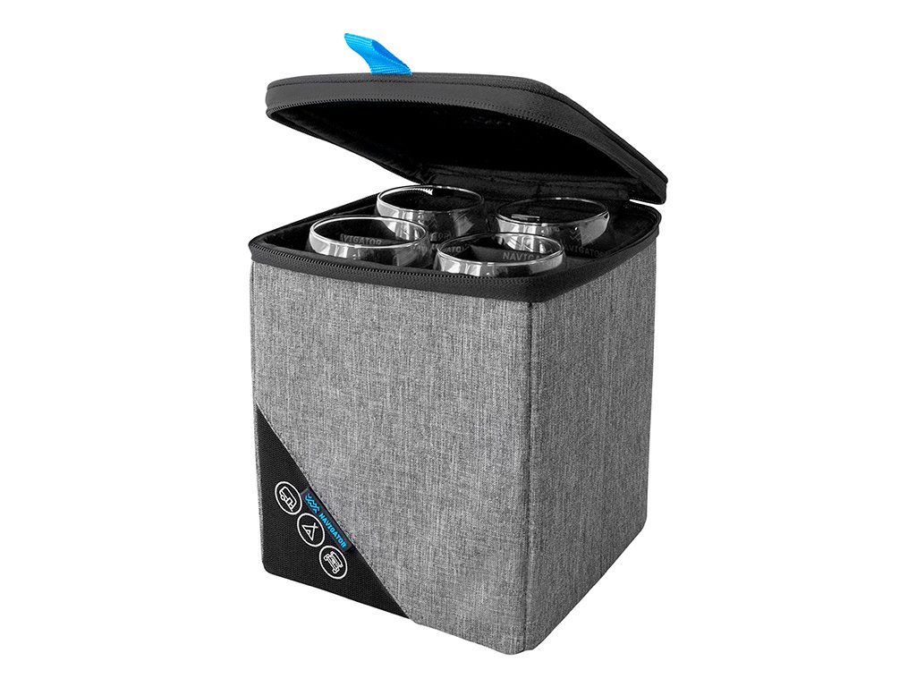 Obal má tvrdý vršek, který pomáhá chránit obsah shora, a zipové uzavření pro bezpečné uložení sklenic. Skvělé při jízdě i při uložení ve skříňce.