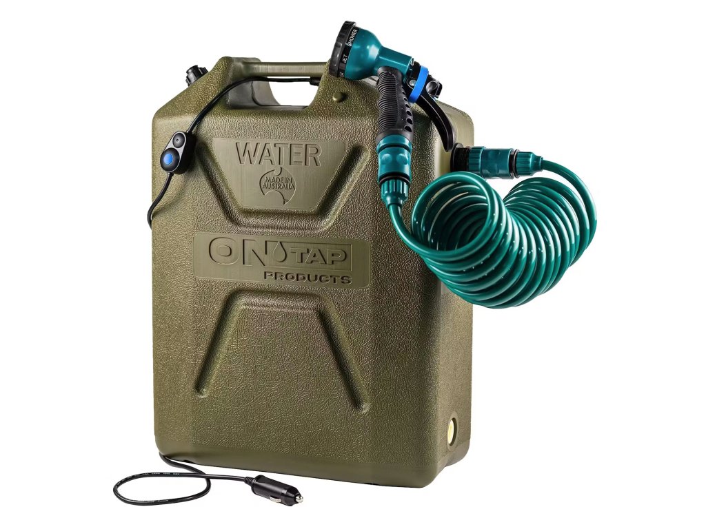 Australská přenosná sprcha ONTAP je perfektní řešení pro všechny, kdo tráví čas venku – ať už jde o surfaře, kempaře, turisty nebo rodiče s dětmi. Díky napájení na 12 V a zabudovanému čerpadlu s průtokem 12 l/min vám poskytne až 5 minut souvislého oplachu kdekoli na cestách.