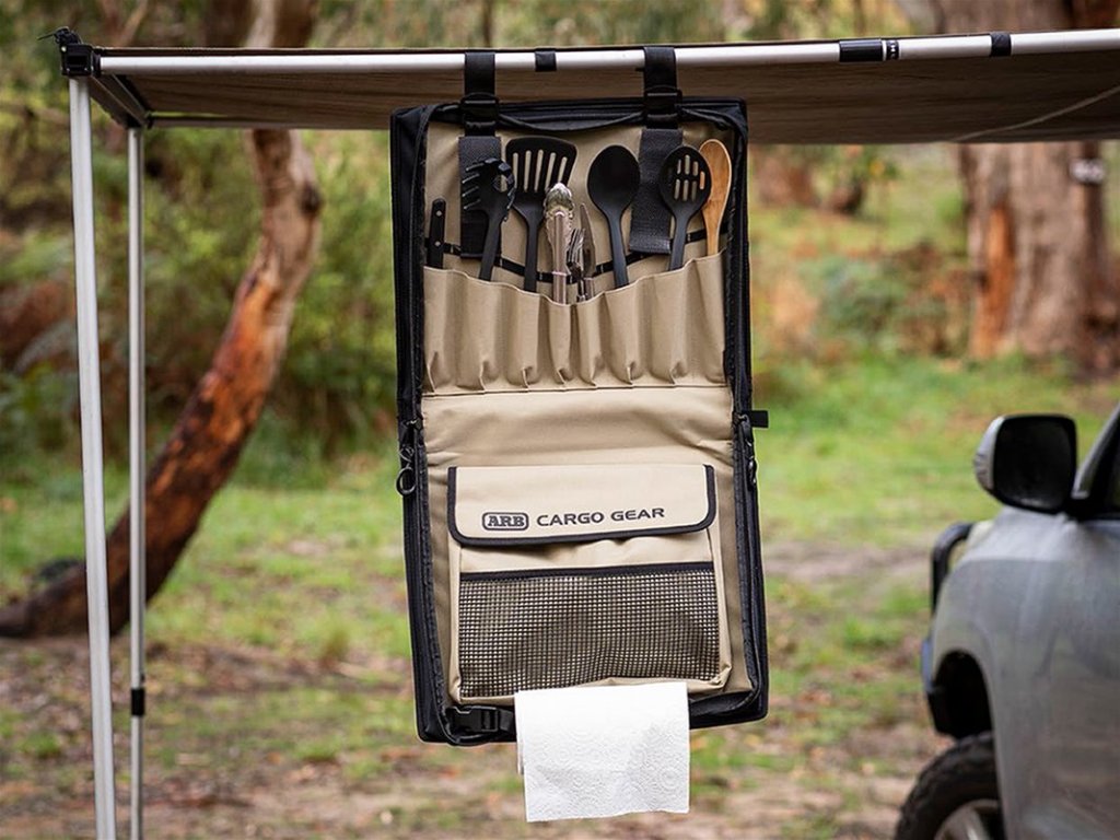 na papírové utěrky a vnější gumovou síťovanou kapsou je ARB Camp Kitchen Organizer dokonalým doplňkem,