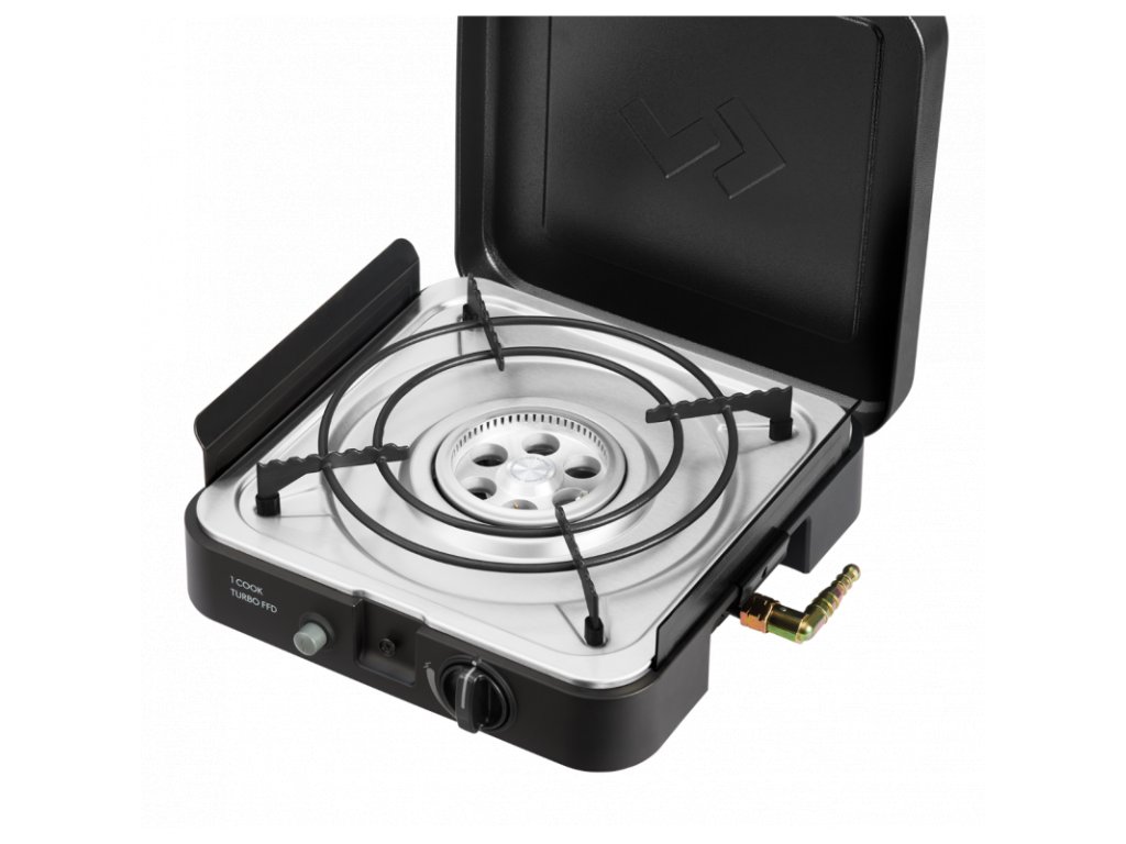 Model Turbo FFD je vybaven bezpečnostním prvkem Flame Failure Device (FFD). Pokud plamen nečekaně zhasne (např. kvůli větru), FFD automaticky uzavře přívod plynu. Díky tomu je vaření bezpečnější i v horších podmínkách a vařič se hodí i do prostředí, kde chcete mít maximální jistotu.