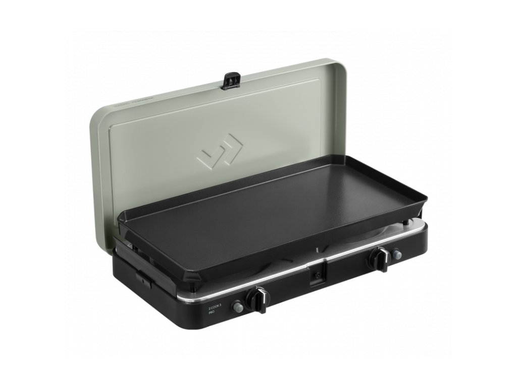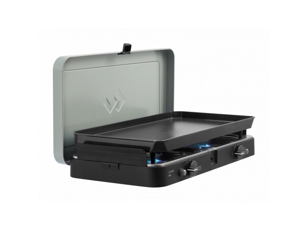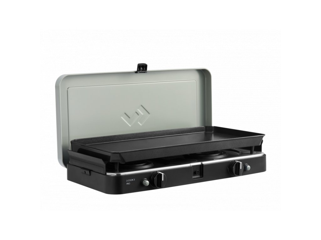 2 Cook 3 Pro Plancha je kompaktní a všestranný dvouhořákový vařič, který je ideální pro kempování, karavaning, pikniky i vaření na balkóně. Součástí setu je velká plancha grilovací deska, díky které připravíte rychle a pohodlně maso, ryby, zeleninu, palačinky i snídani typu vejce a slanina.