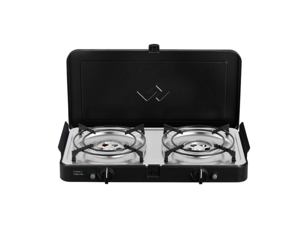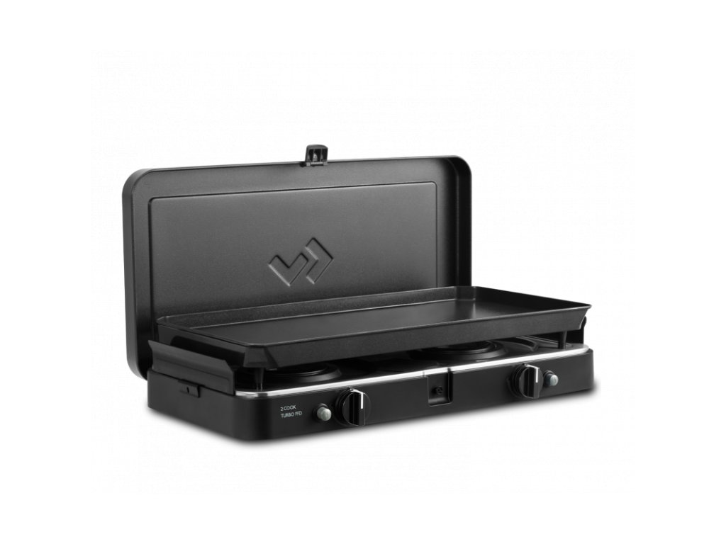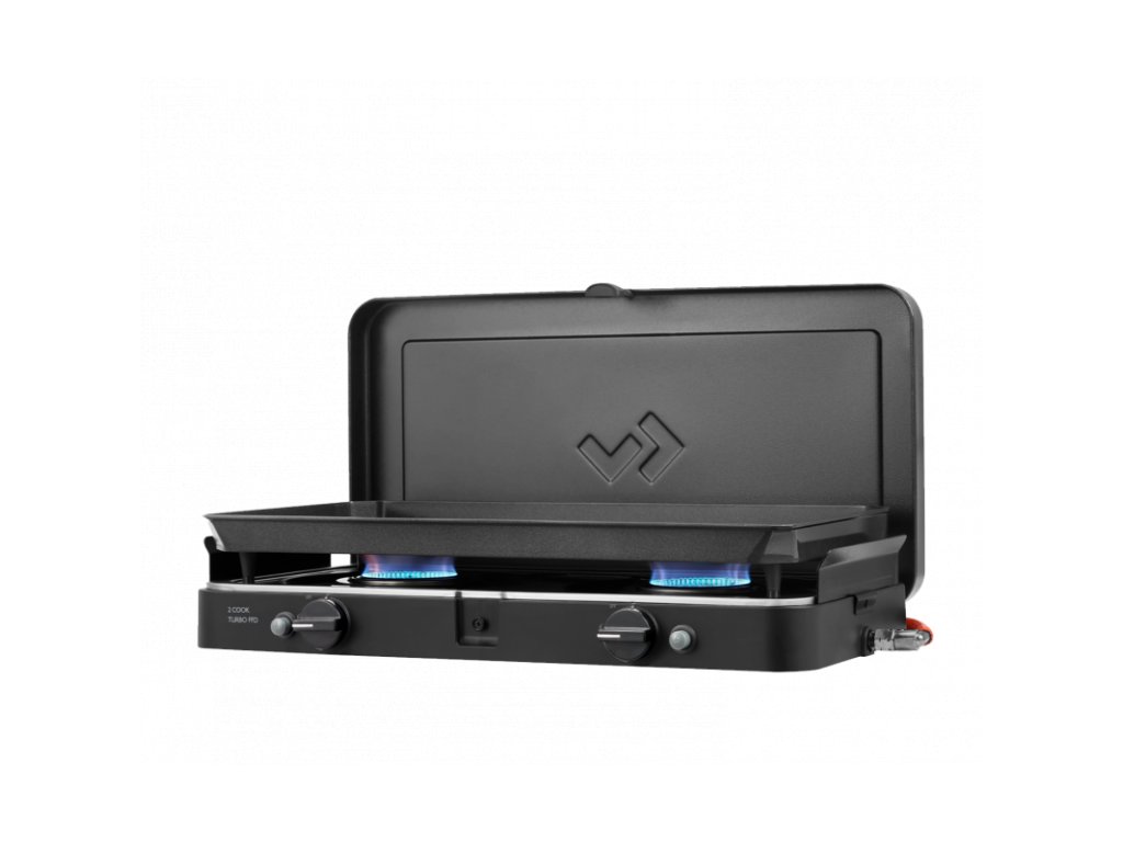 Vhodný doplněk pro každého karavanistu – dvouhořákový vařič s pojistkou FFD a velkou planchou GreenGrill pro pohodlné vaření i grilování na cestách.