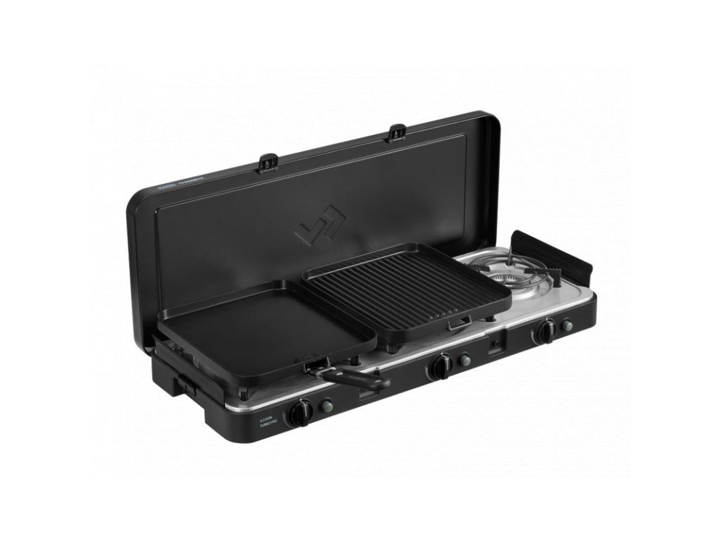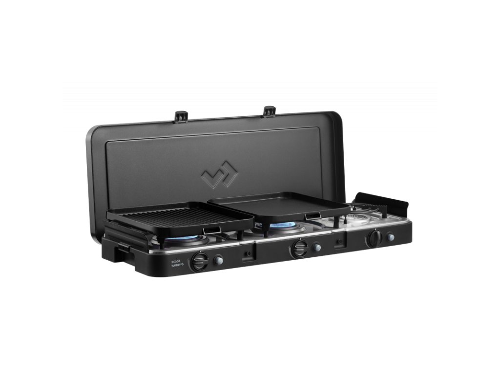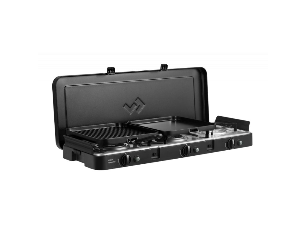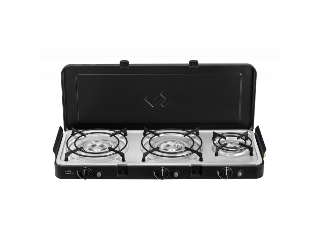 3 Cook Turbo FFD Deluxe je výkonný a všestranný plynový vařič se třemi nezávislými Turbo hořáky, který je navržen tak, aby zvládl přípravu rozmanitých jídel během kempování, karavaningu či outdoor pobytů. Díky bezpečnostní pojistce FFD (Flame Failure Device) je použití bezpečné jak venku, tak i uvnitř (např. v obytném voze nebo stanu, dle certifikace výrobce).
