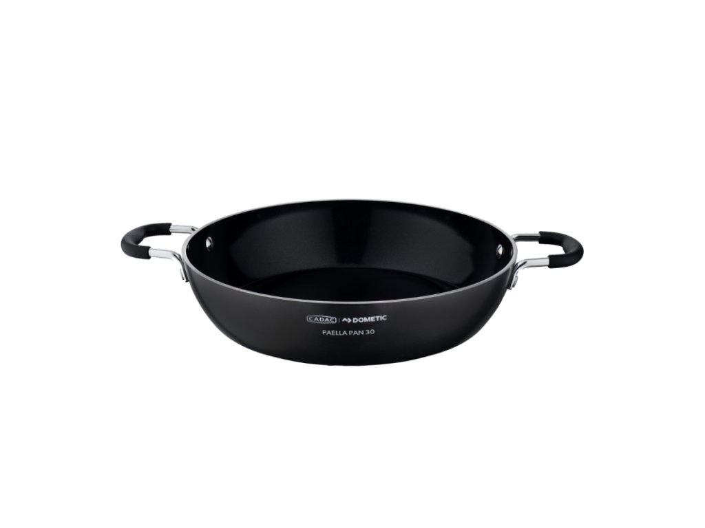 CADAC Paella Pan 30 je lehká, ale velmi odolná hliníková pánev určená pro vaření a grilování na plynových grilech a vařičích. Díky kvalitnímu keramickému povrchu GreenGrill je vaření zdravější, bez připalování a s minimální potřebou tuku.