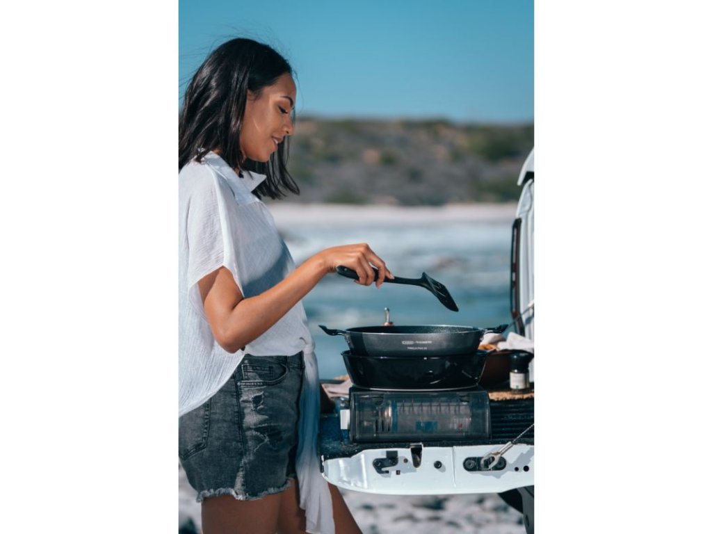 I přes své malé rozměry nabízí Safari Chef 30 Compact překvapivou univerzálnost. Součástí balení je stojan na hrnce, BBQ rošt, hladká grilovací deska a víko/pánev, takže můžete vařit, grilovat i smažit na jednom zařízení.