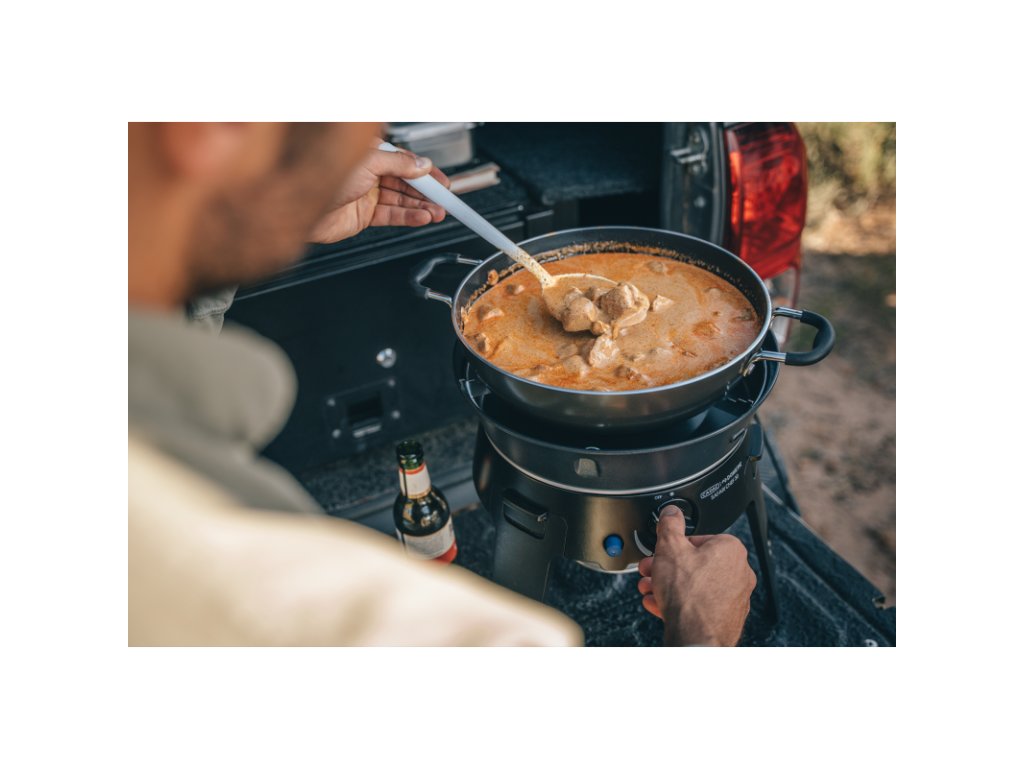 Safari Chef 30 LP Combo je kompaktní a všestranný plynový gril, ideální pro kempování, cestování i rychlé vaření venku. Díky nízké hmotnosti (cca 4 kg) se snadno přenáší a zároveň nabízí tři způsoby použití: stojan na hrnce, BBQ rošt a víko/pánev, které lze využít i jako hrnec. To znamená, že si na cestách připravíte nejen grilované maso, ale i těstoviny, polévku nebo snídani na pánvi.