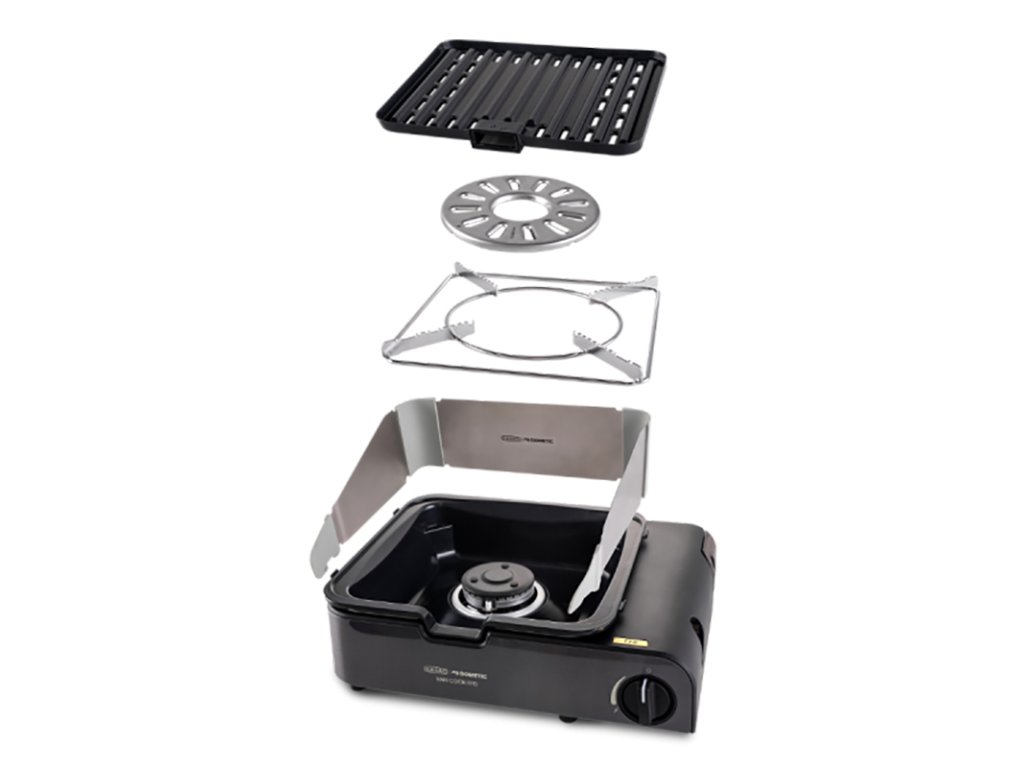 Součástí balení je grilovací deska, stojan na hrnce a držák na kávovou konvici. Grilovací deska je opatřena keramickým povrchem CADAC GreenGrill, který je zdravotně nezávadný, snadno se čistí a umožňuje zdravější vaření. Odnímatelná rukojeť usnadňuje manipulaci s deskou.