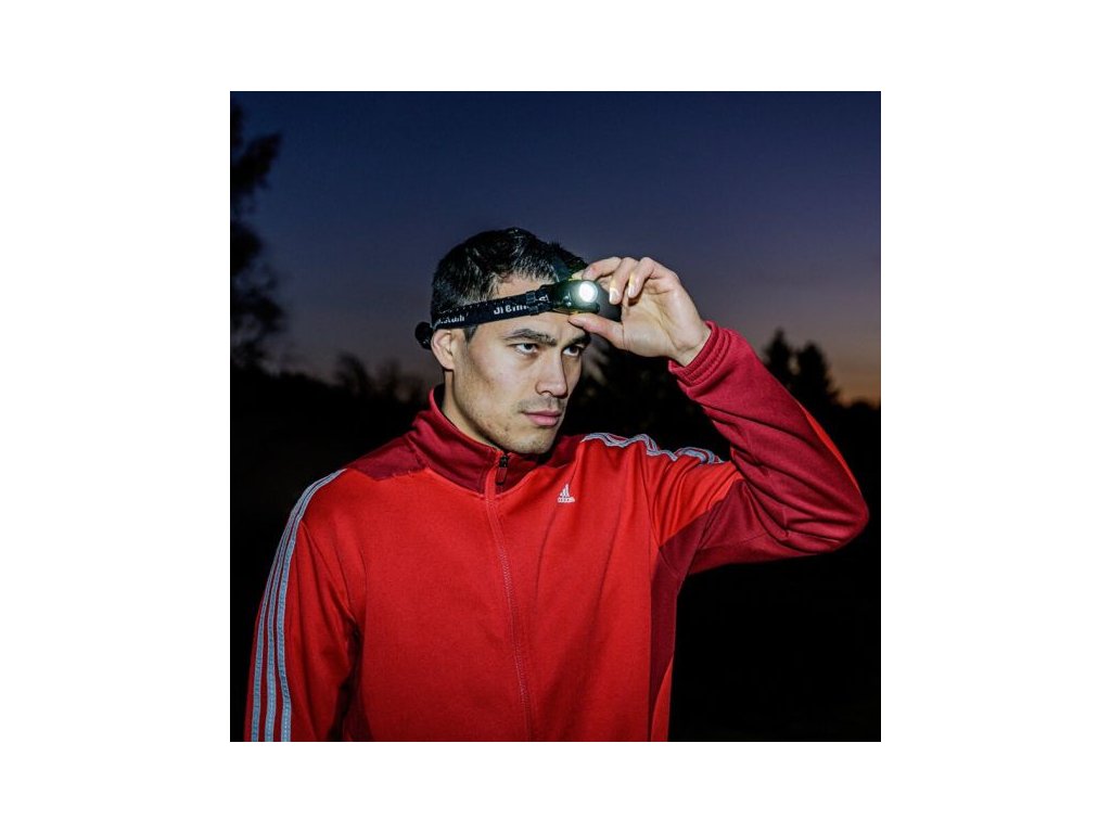 Hlavní výhodou čelovky je její plynule nastavitelný fokus – od širokého světla na blízko po úzký kužel na dálku až 80 m. Díky zadnímu akumulátoru je skvěle vyvážená a pohodlně sedí i při dlouhodobém nošení. Přepínatelné světelné režimy (100 / 50 / 10 %, SOS, zadní červené světlo a blikání) se přizpůsobí každé situaci – ať už kempujete, opravujete, běháte nebo se pohybujete v noci.