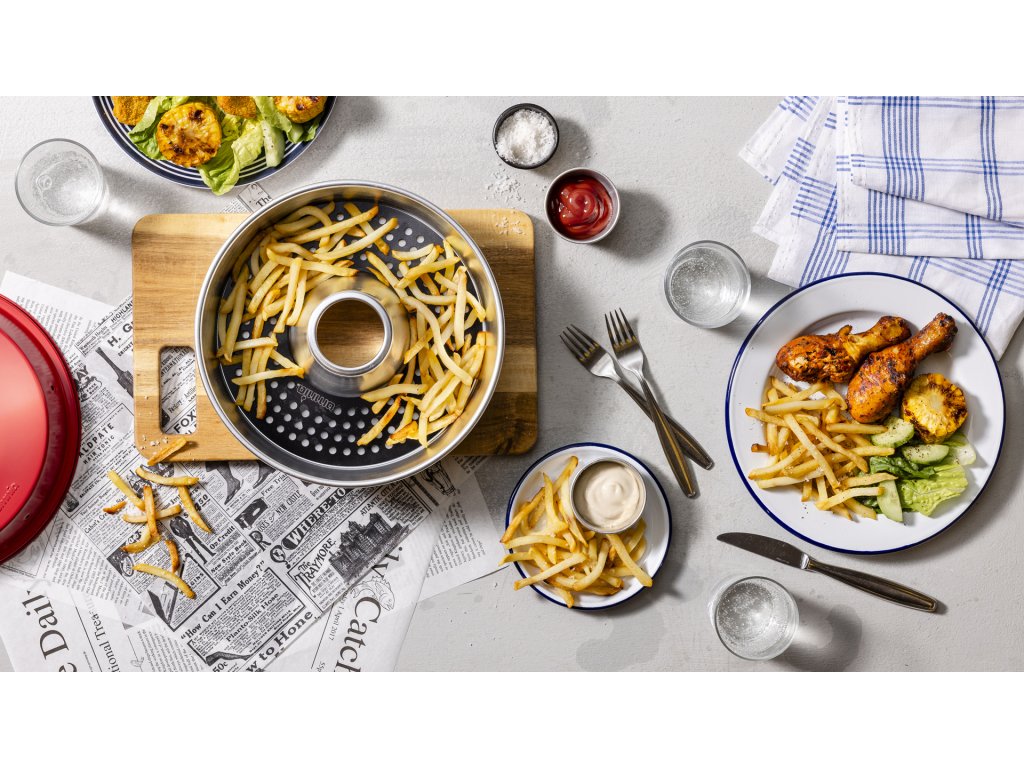 Praktická pečicí vložka s děrovaným dnem usnadňuje přípravu jídla v troubě Omnia a zajišťuje perfektní cirkulaci horkého vzduchu. Díky nepřilnavému keramickému povrchu z nerezové oceli se jídlo nepřipéká a vložka se snadno čistí – ideální pro přípravu hranolků, zeleniny nebo dalších menších jídel bez starostí.