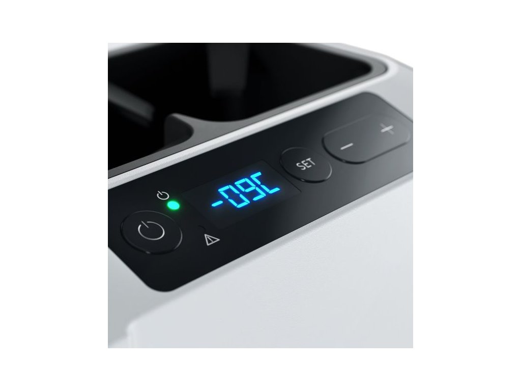 Lednice je připravena k připojení na 12 V / 24 V DC i 100–240 V AC. Je vybavena elektronickým termostatem a energeticky úsporným provozem, vhodným i pro dlouhodobé použití z baterií.