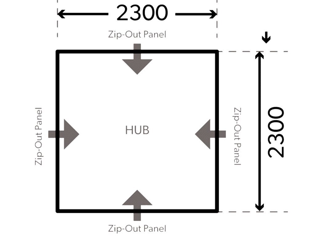 HUB lze využít jako stan nebo markýzu. Přidáním až tří přístavků Dometic Hub Annexe můžete vytvořit prostor pro spaní až pro 6 osob pod jednou střechou.