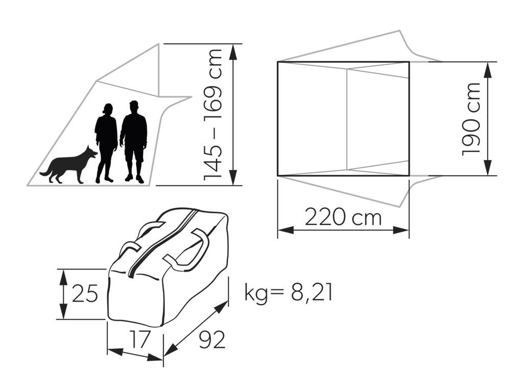 Připojuje se ke stanu Dometic TRT 140 AIR ve výšce 1,45 m až 1,69 m.
