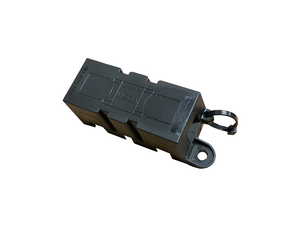 Držák pojistky Littelfuse MEGA je určený pro pojistky Littelfuse MEGA a slouží k jejich bezpečnému zapojení v elektrickém okruhu vozidla.