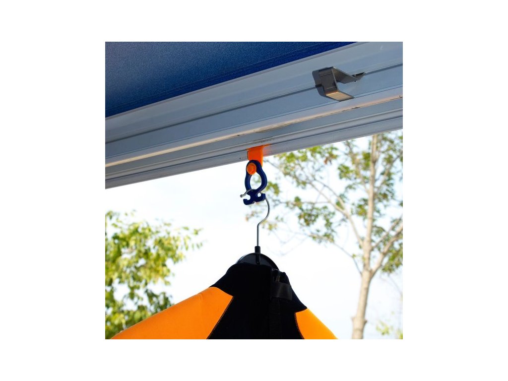 Tip: S Croc Adapterem lze háčky L využít v kedrové liště markýzy pro uchycení popruhů/storm strapů nebo zavěšení doplňků.