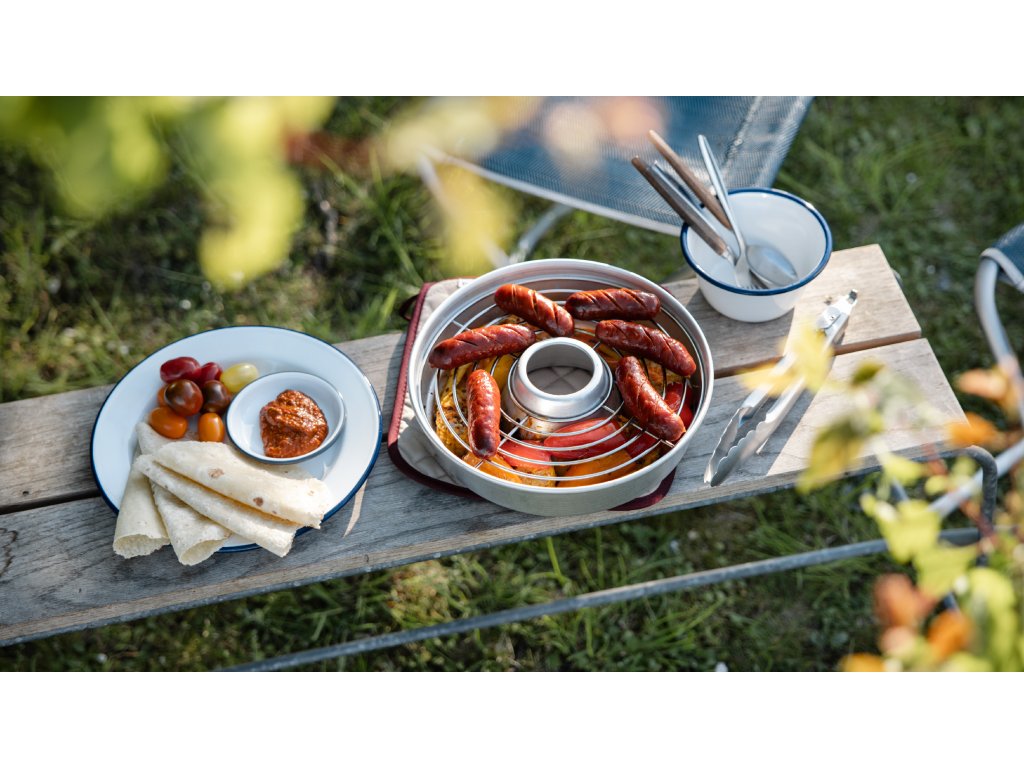 Chytrý doplněk, který vám umožní připravit dvě jídla najednou. Umístěte jednu ingredienci do spodní části formy a druhou na horní rošt – ušetříte čas, plyn i nádobí. Skvělá volba pro rychlé a chutné vaření na cestách.