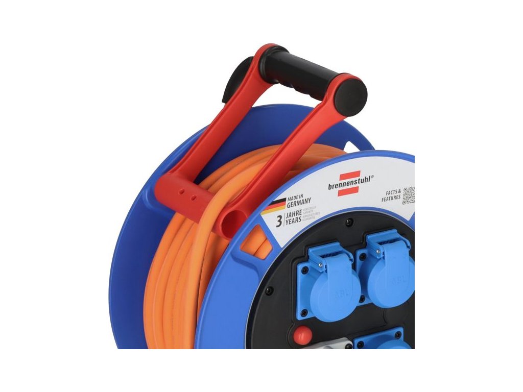 Bezpečnost je zajištěna pomocí jednopólového tepelného jističe, který při přetížení automaticky odpojí napájení. Ergonomické madlo Cablepilot usnadňuje přenášení a brání zamotání kabelu při navíjení. Rukojeť pro navíjení je otočná a usnadňuje manipulaci v terénu.