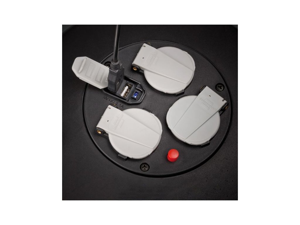 Robustní a kompaktní kabelový box Vario-Line nabízí tři zásuvky Schuko s automaticky zavíracími kryty a dvě USB nabíjecí zásuvky s celkovým nabíjecím proudem až 2100 mA. Díky tomu můžete pohodlně napájet i nabíjet více zařízení najednou – od elektrospotřebičů po mobilní zařízení.