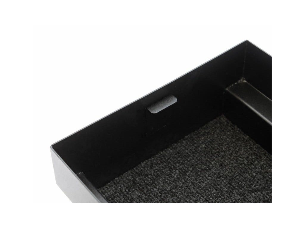 Je vybaven bezpečnostním zámkem odolným proti neoprávněné manipulaci a je vystlán kobercem, aby chránil vaše cennosti a zabránil chrastění.
