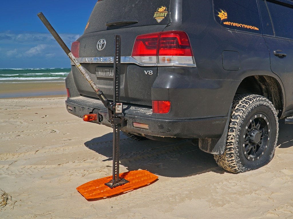 MAXTRAX Jaxbase má na spodní straně dodatečné výztuhy, které poskytují velkou a stabilní základnu pro Hi-Lift, lahvový nebo jiný typ zvedáku.