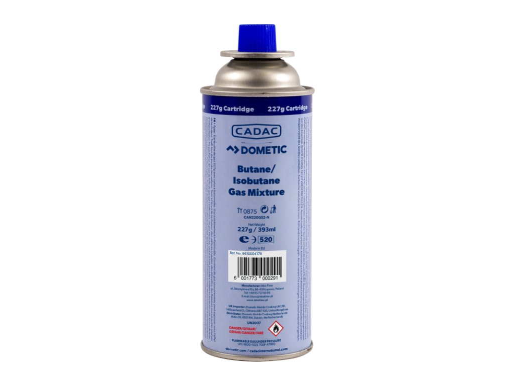 Gas Cartridge 227 g je butanová plynová kartuše s bajonetovým připojením SSN-29, určená pro širokou škálu kompaktních vařičů a grilů CADAC. Díky jednoduchému připojení a kompaktním rozměrům je ideální volbou pro kempování, cestování i vanlife.