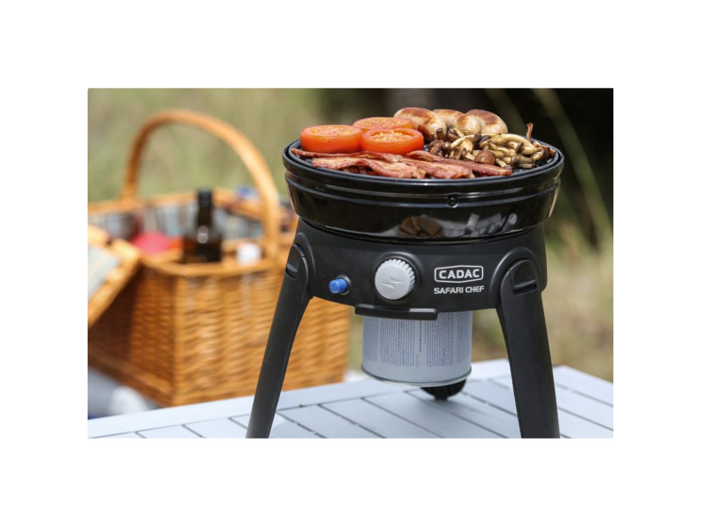 Model Safari Chef HP běží přímo na plynovou kartuši – jednoduše se našroubuje pod spotřebič a můžete ihned začít vařit. Pokud chcete HP připojit k plynové láhvi, použijte adaptér HP → LP.