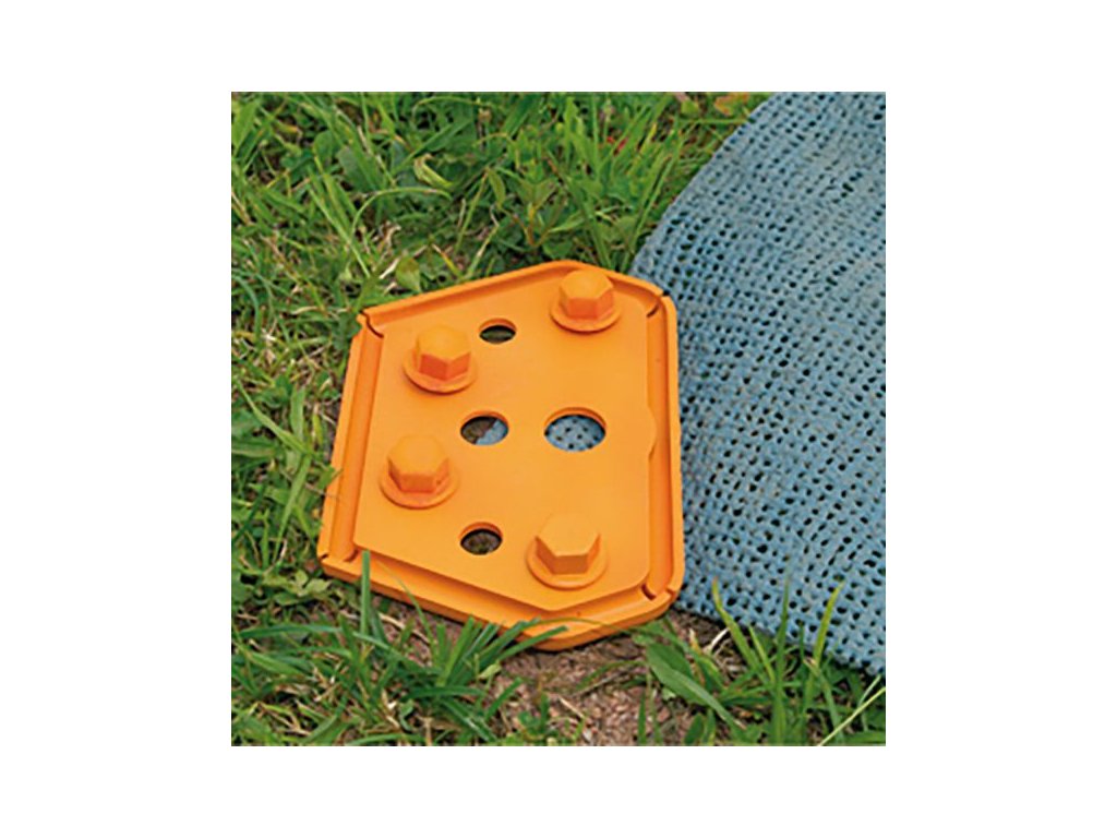 Peggy Peg® Uni Plate je chytré řešení pro připevnění stanových koberců, ochranných fólií nebo plachet bez nutnosti propichování materiálu. Díky speciální konstrukci drží látku pevně na zemi a zabraňují jejímu posunutí či nadzvednutí větrem.