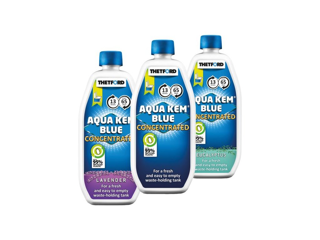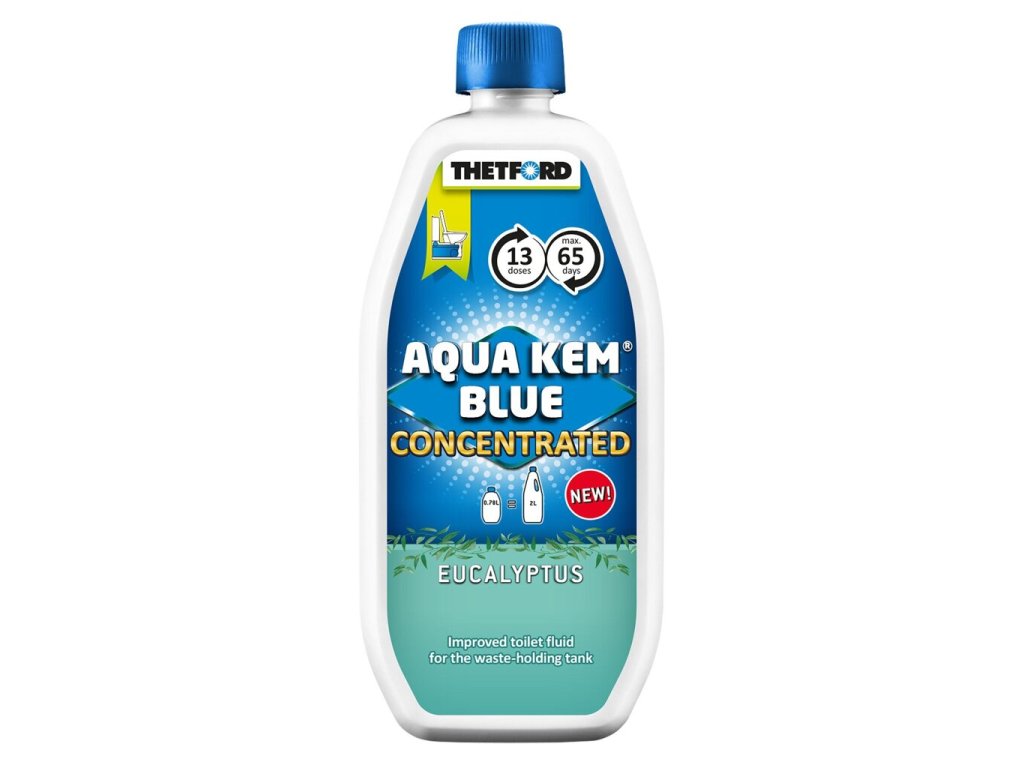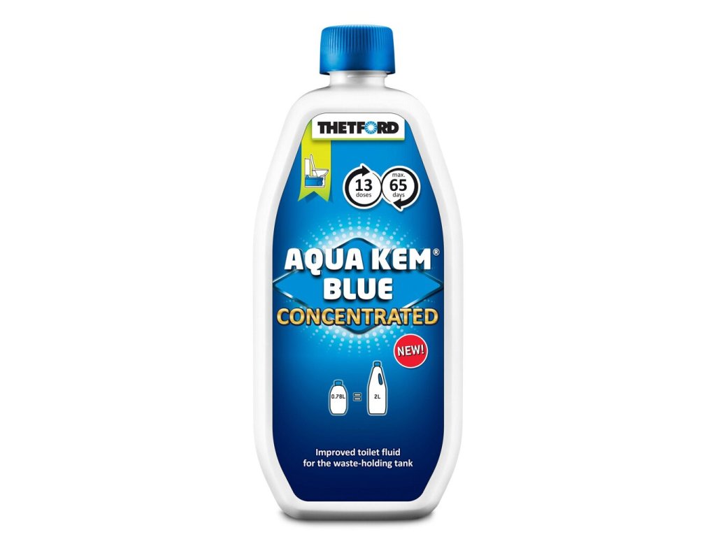 Koncentrovaná WC chemie Thetford Aqua Kem Blue Concentrated je moderní a účinná náhrada klasické 2l rozkladové chemie Aqua Kem Blue – a to v menším, skladnějším a ekologičtějším balení. Přesto nabízí stejné množství dávek a výdrž až 65 dní při každodenním používání.