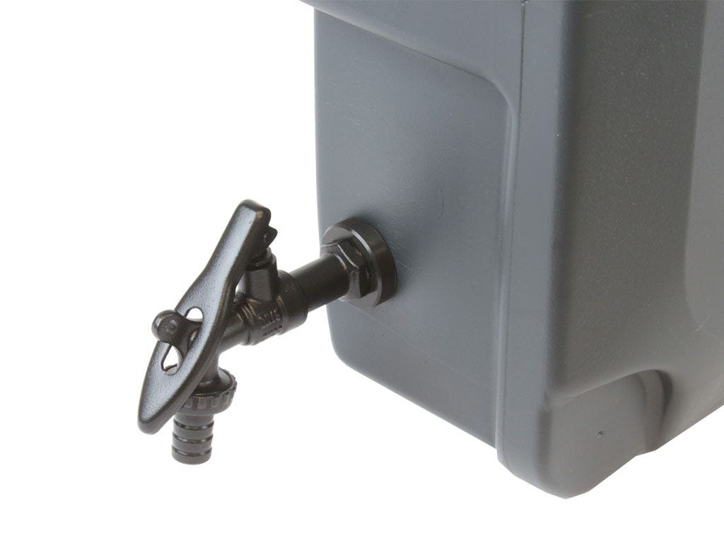 Součástí je uzamykatelný kohoutek z oceli s černým práškovým lakem (1/2").