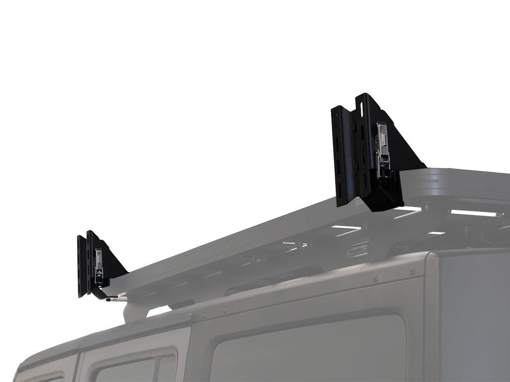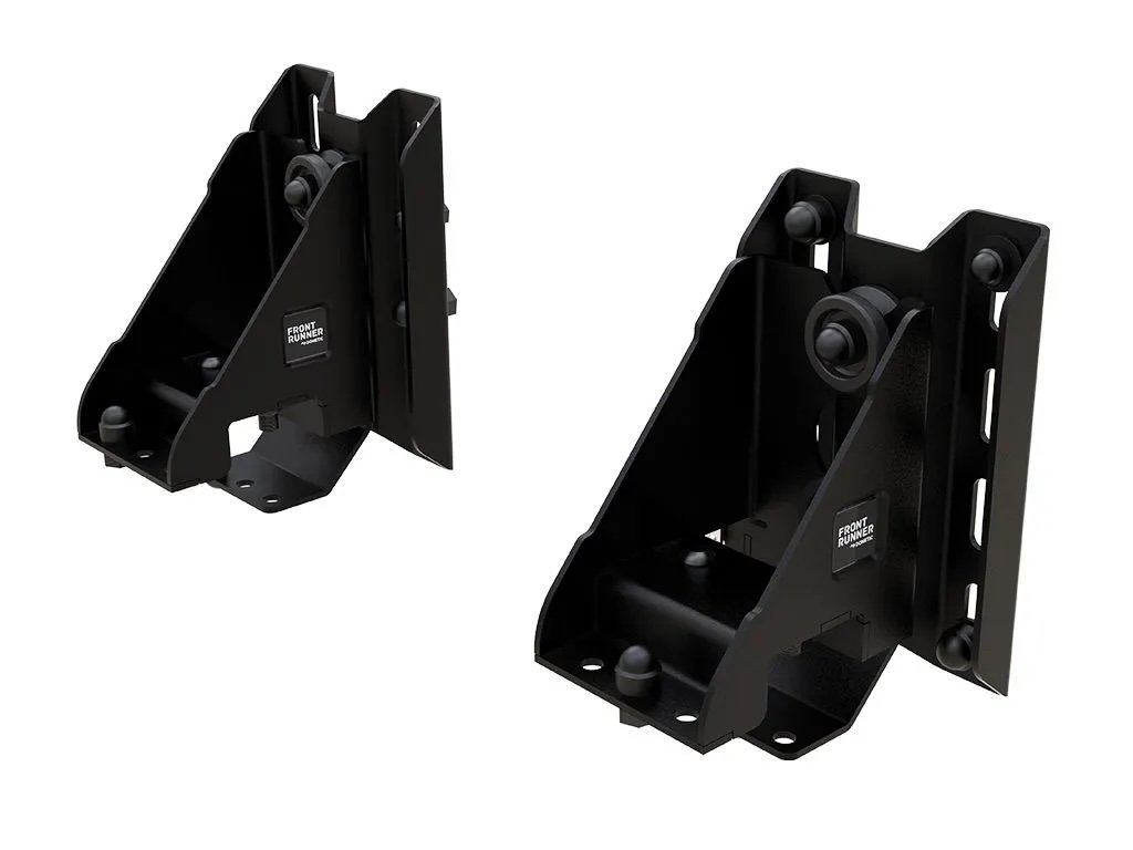 Dva (2) základní držáky se přišroubují na boční profil vašeho nosiče Front Runner Slimline II, zatímco samonaváděcí pouzdra se připevní ke spodní straně markýzy.