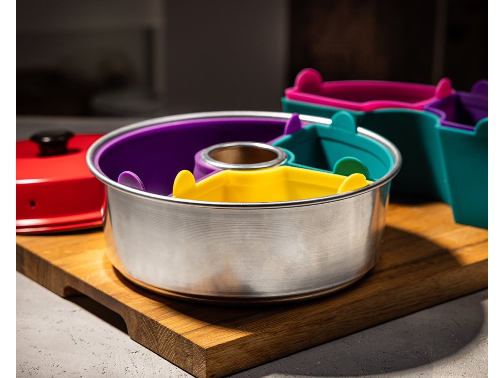 Praktická sada šesti silikonových formiček v provedení 2× půlkruhová a 4× čtvrtkruhová. Skvělé řešení pro vaření i ohřívání několika různých malých porcí najednou – ideální pro tapas, sladké dobroty nebo zbytky z večeře. Díky flexibilnímu provedení a možnosti složení do sebe zabírají minimum místa v úložném prostoru kuchyně či karavanu.
