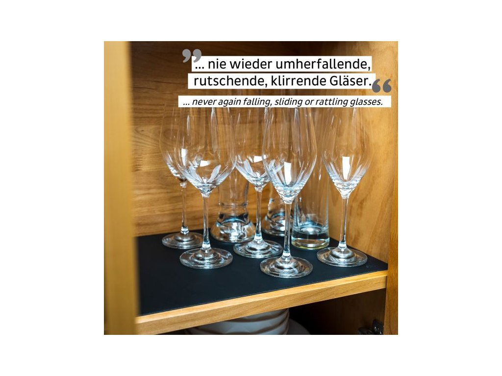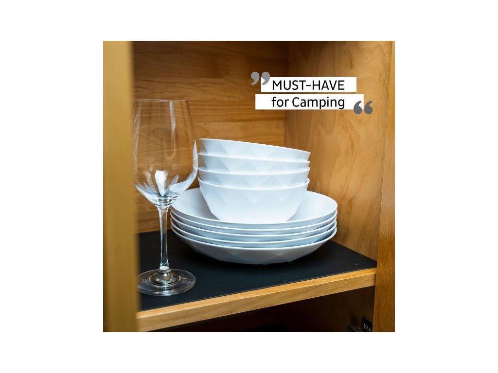 Vhodný doplněk pro každého karavanistu – stabilní a tiché uložení sklenic, které si navíc můžete upravit přesně na míru.