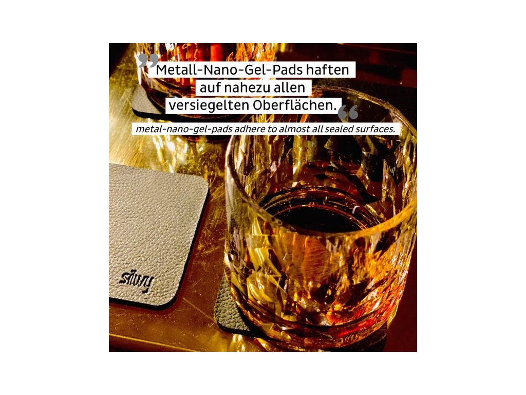 Součástí balení jsou metal nano gel podložky, které pomáhají vytvořit stabilní magnetickou plochu na vybraném místě. Díky tomu sklenice lépe drží na stole a méně se posouvají při vibracích a pohybu.