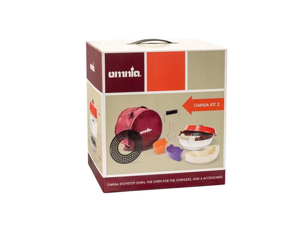 Omnia Kit 2 je ideální startovací sada pro všechny, kteří chtějí začít vařit a péct i mimo domov. V praktickém balení najdete přenosnou troubu Omnia® Classic Original 2L a čtyři nejoblíbenější doplňky, které rozšiřují možnosti přípravy jídla na maximum. Vhodné pro vaření na plynovém vařiči, ideální pro karavanisty, kempaře nebo milovníky outdooru.