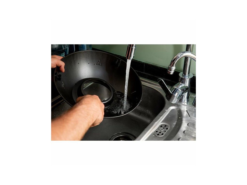 Piezo zapalování zajistí snadné spuštění bez sirek a odnímatelný zásobník na vodu a tuk lze mýt v myčce. Díky předmontované konstrukci není potřeba žádné nářadí – gril je připravený ihned po vybalení. Praktické víko, transportní taška, hadice i regulátor jsou součástí balení.