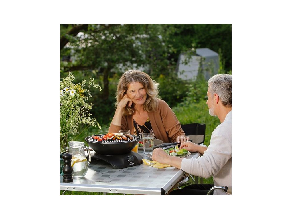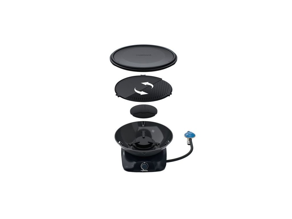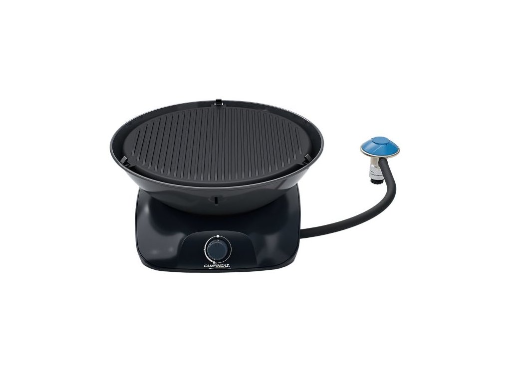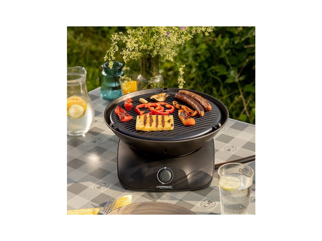 Kompaktní plynový gril Campingaz® 360 Grill CV přináší pohodlné stolní grilování a vaření – ať už jste na cestách, na balkoně nebo v kempu. Díky kruhovému 360° hořáku je teplo rovnoměrně rozloženo po celé ploše, zatímco oboustranný rošt z litého hliníku umožňuje variabilní použití – jedna strana žebrovaná na maso, druhá hladká jako kontaktní gril. Integrovaný držák na pánev promění gril ve stolní vařič.
