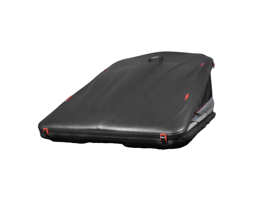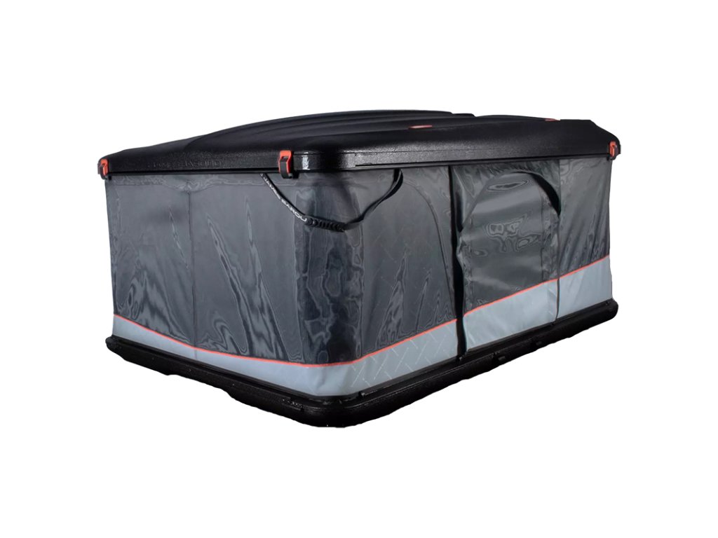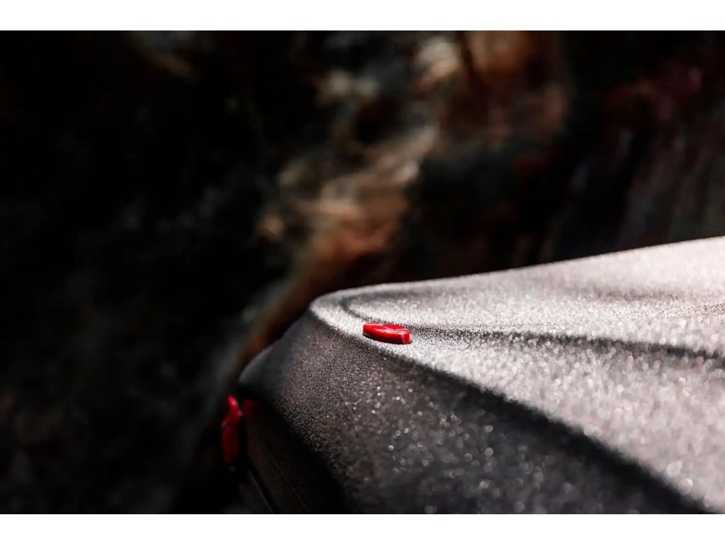 Inspirací pro strukturu stanu byla vulkanická láva – Line-X povrchová úprava zajišťuje jedinečný vzhled a extrémní odolnost. Červené detaily evokují žhavou energii magmatu a dodávají stanu styl i charakter.