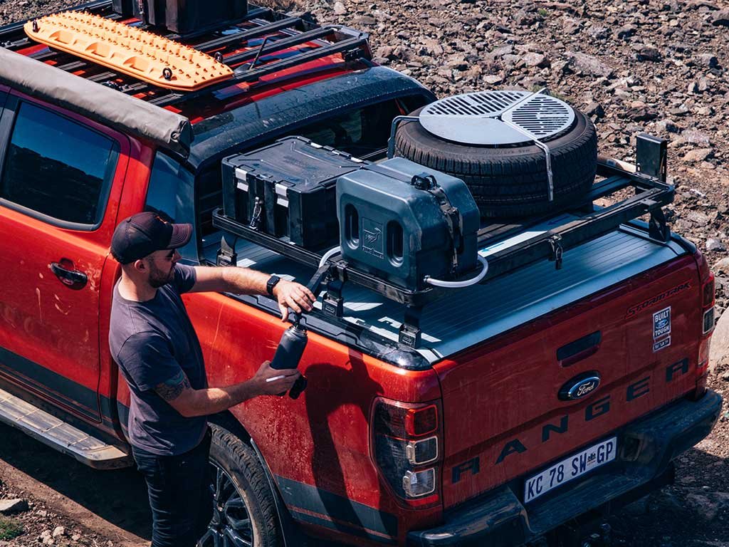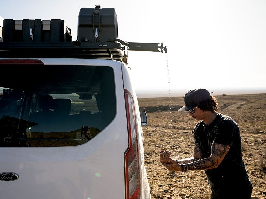 Vyklápí se o 90° do strany, což umožňuje, aby kohoutek přesáhl bok vozidla.