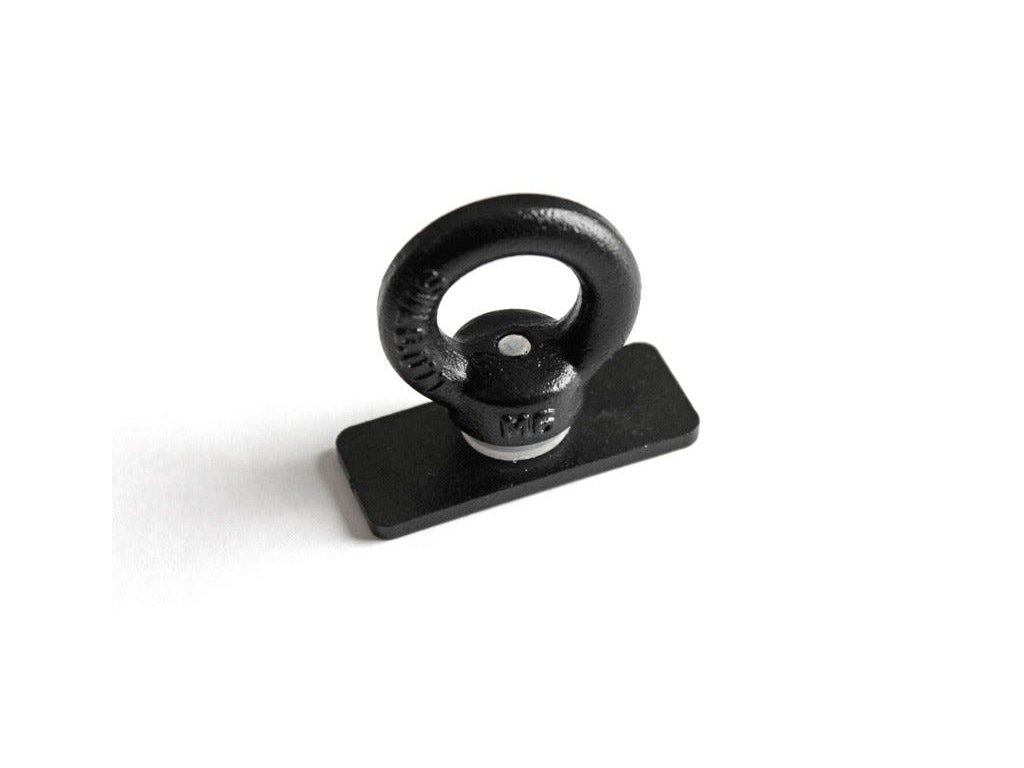 2 černé upevňovací kroužky / matice s okem bezpečně zajistí další vybavení na zásuvkách Front Runner, které obsahují vestavěné montážní lišty pro příslušenství.