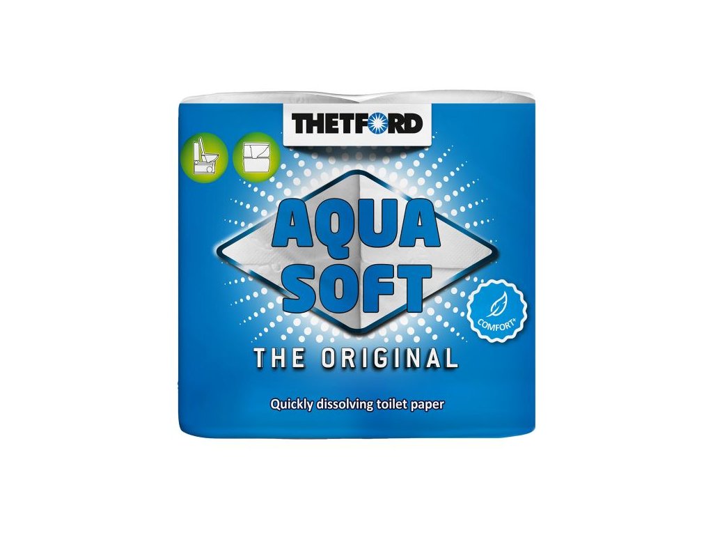 Thetford Aqua Soft je dvouvrstvý toaletní papír navržený speciálně pro použití v chemických a kazetových toaletách. Díky rychlému rozpouštění ve vodě zajišťuje hladký provoz toalety bez ucpávání a usnadňuje vyprazdňování odpadní nádrže.