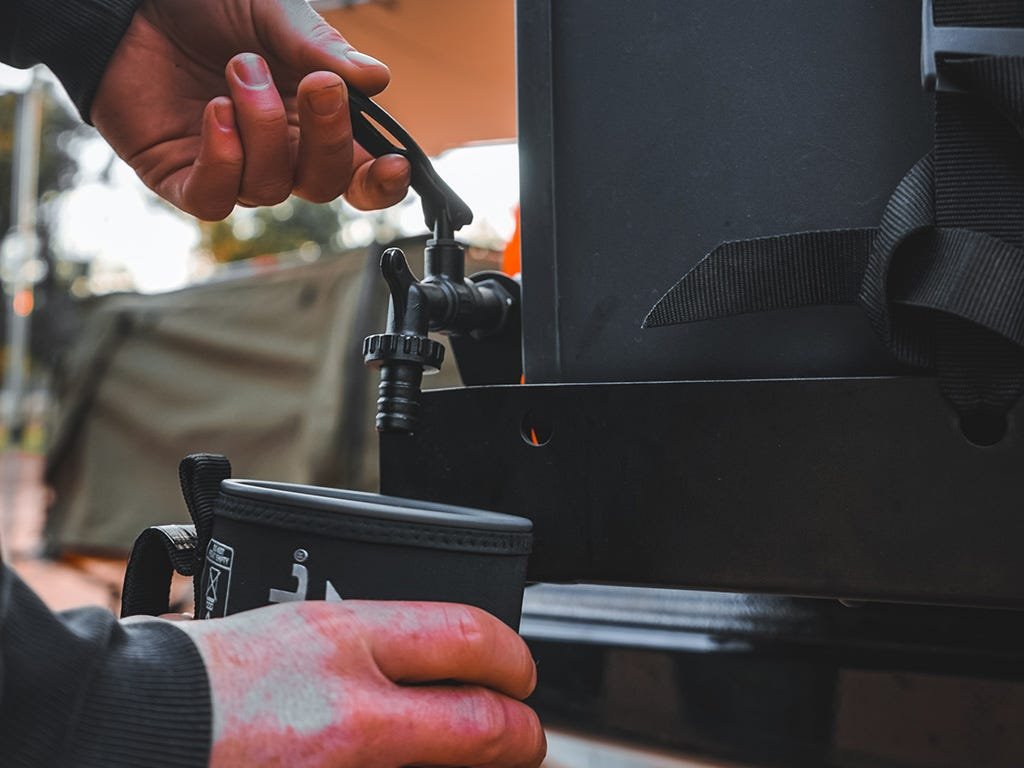 Funguje ve spojení s hadicovou sadou Front Runner Premium Water Tank Hose Kit.