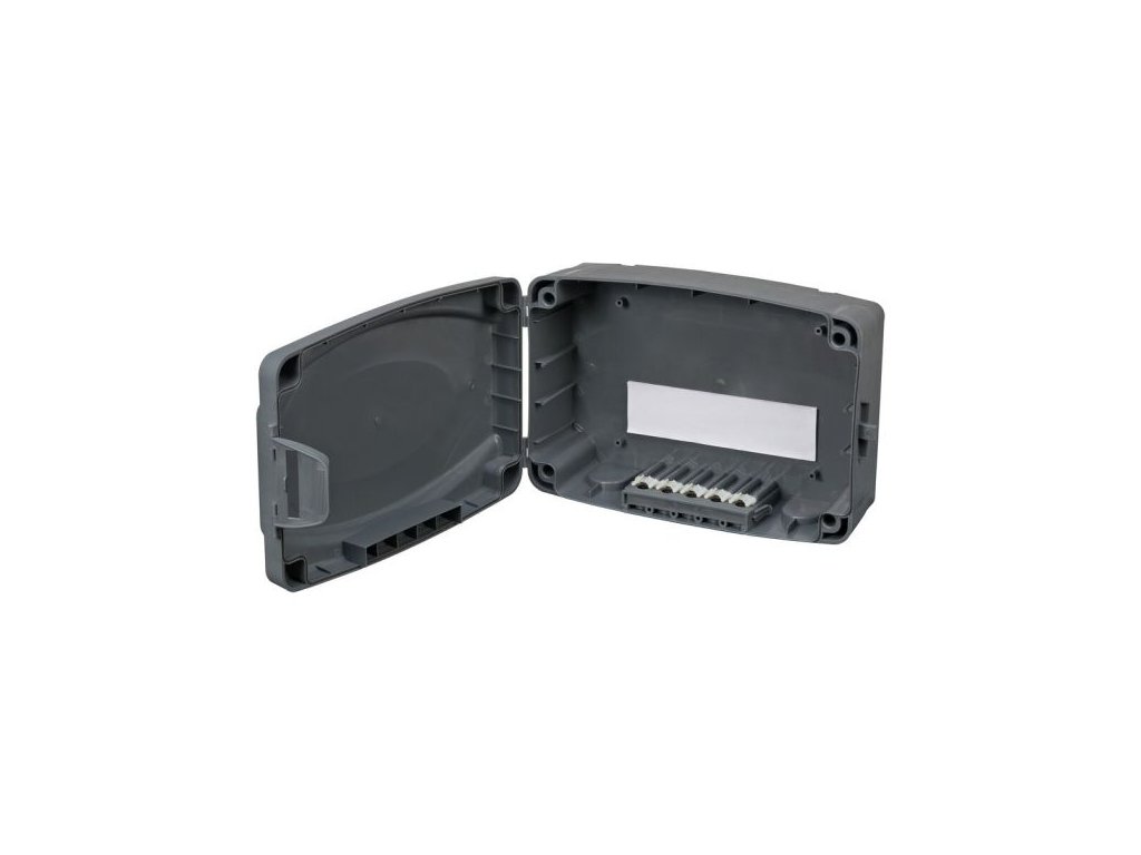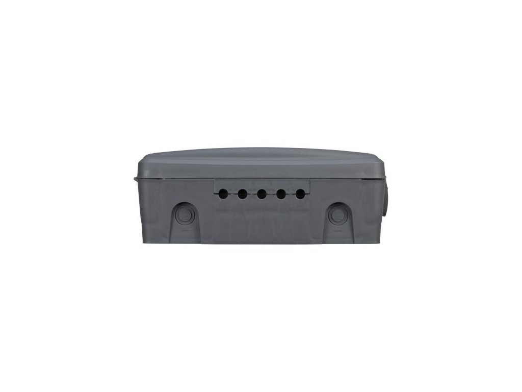 Odolné pouzdro s kvalitním těsněním chrání vnitřní prostor před vlhkostí i prachem. Díky více vstupům a výstupům pro kabely je zajištěna flexibilita připojení. Skříň lze snadno namontovat na zeď nebo zavěsit díky předpřipraveným otvorům a očkům. Víko je uzavíratelné pomocí pevného zacvakávacího mechanismu pro větší bezpečnost.