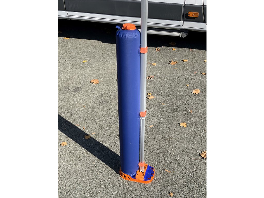 Fix & Go Tube je flexibilní závaží pro použití s Fix & Go kotevní deskou 2.0, ideální pro instalaci markýzy či pavilonu na dlažbě, betonovém nebo asfaltovém povrchu. Jednoduše nasadíte adaptér na kotevní desku, naplníte trubici 10 l vody a upevníte ji suchými zipy – a získáte 10 kg stabilního zatížení na každou stranu (20 kg celkem), pro větší stabilitu v mírném větru.
