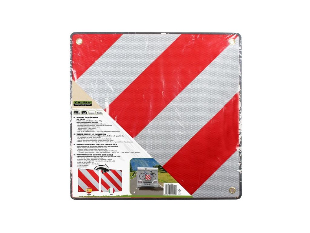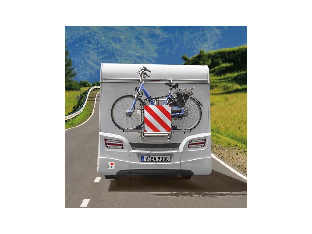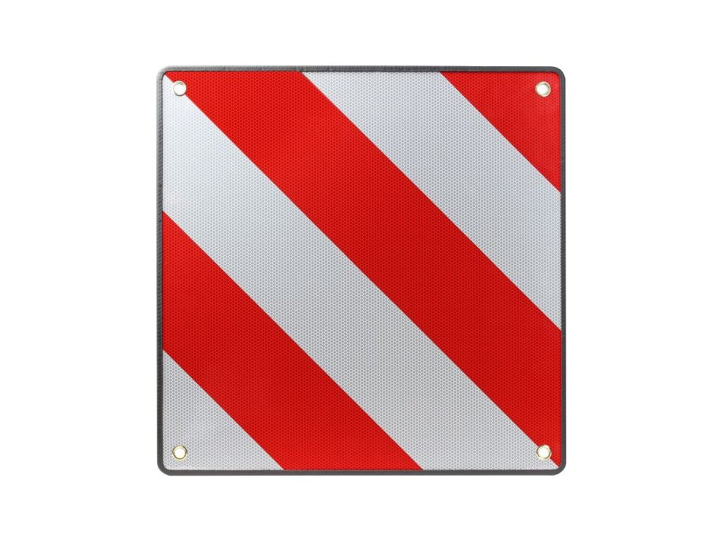 S touto výstražnou tabulí snadno označíte přesahující náklad podle předpisů platných v Itálii i ve Španělsku – a to pouze jedním výrobkem. Tabuli jednoduše otočíte podle aktuální destinace a zajistíte čtyřmi pevnými oky, ať už na nosiči kol, střešním boxu nebo zadní části vozidla.